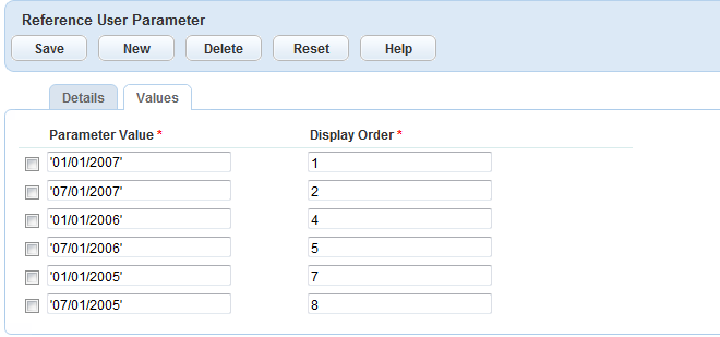If you want to delete any existing values, mark the check box next to each desired value and click the Delete button.