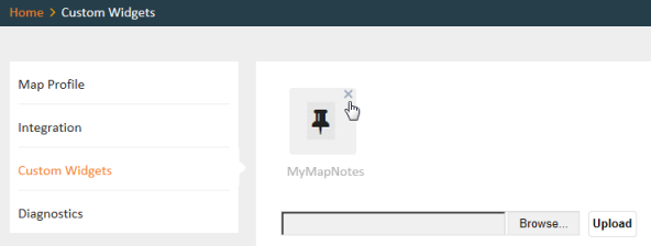The following sample shows a custom widget named “MyMapNotes” which has been successfully deployed: